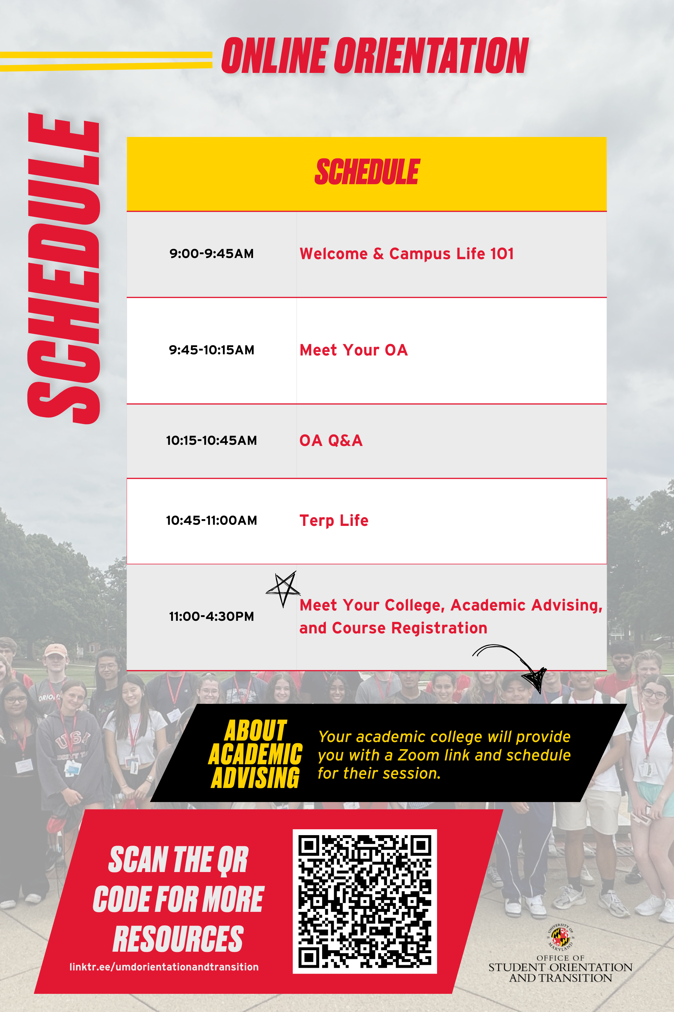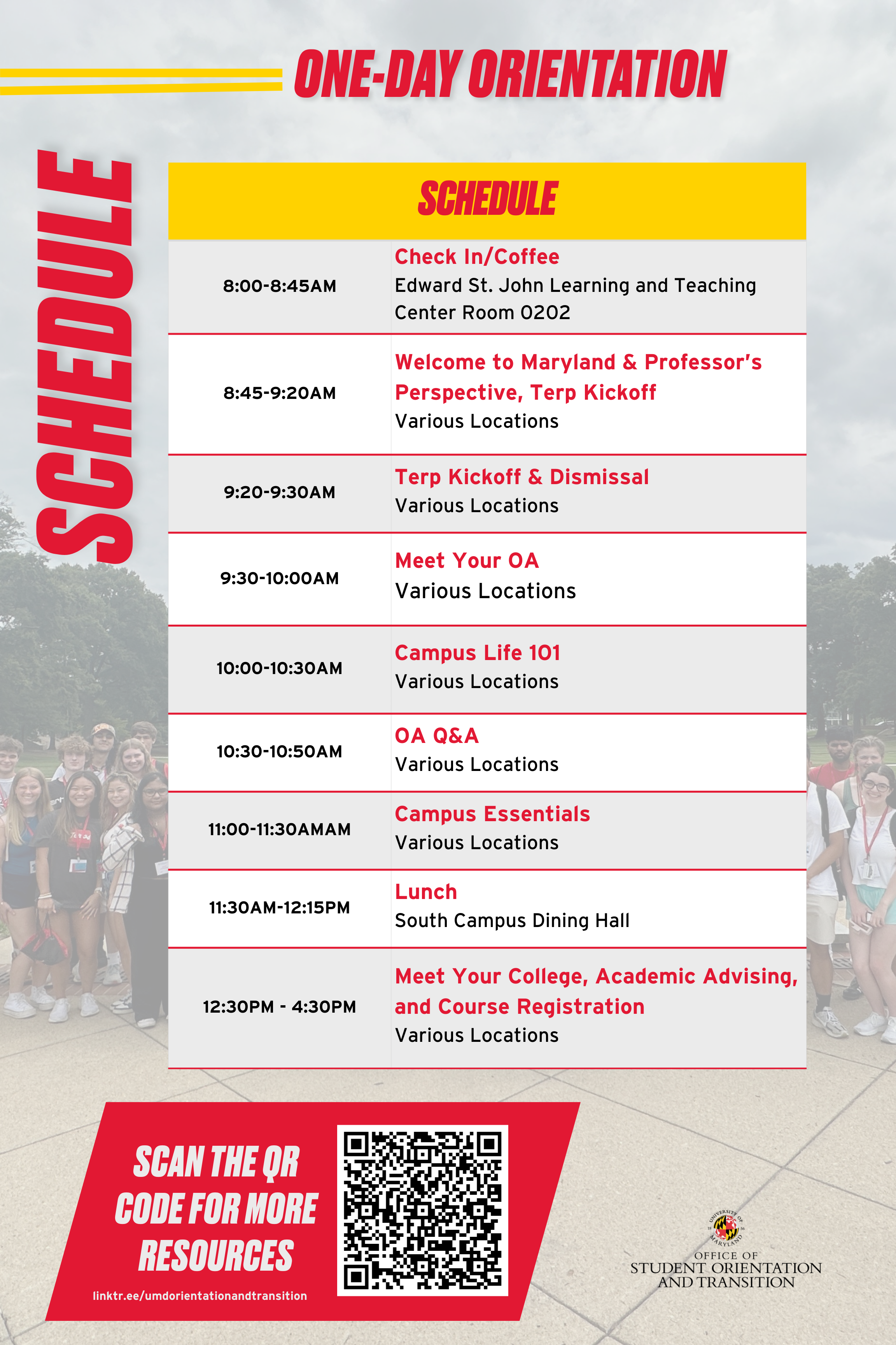New Student Orientation is required to all new degree seeking students at the University of Maryland. It is required that student's participate in all aspects of the New Student Orientation program. Students are expected to stay for the entire duration of the program. Please do not make any plans that would conflict with attendance at your New Student Orientation.